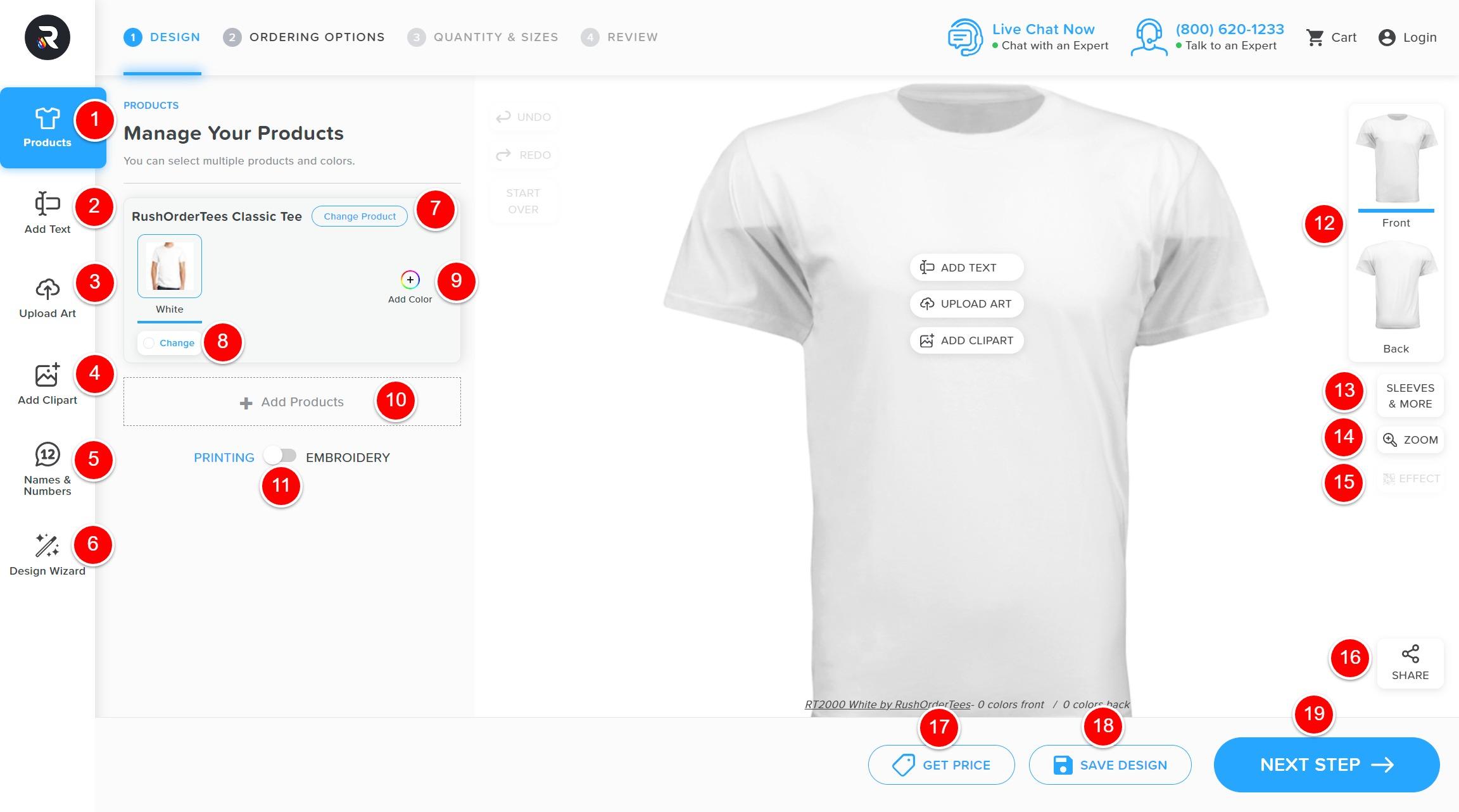 - Front/Back Toggle - Switch between designing for the front and back of your garment