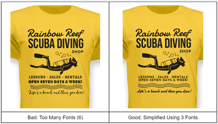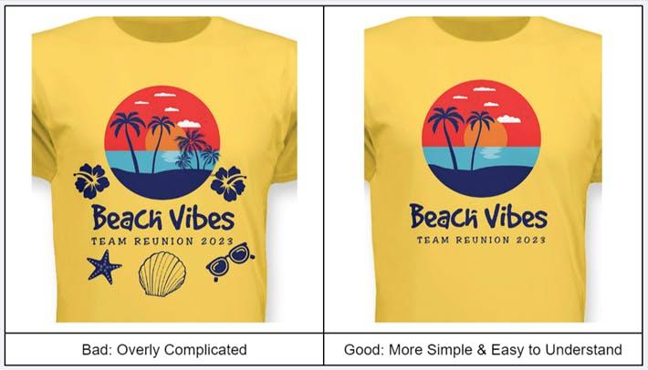 Applying simplicity is among the most powerful ways a design can be improved. The human eye can only process a certain amount of information at once; too many details can make the design difficult to absorb. So limiting the number of images, graphical elements, and pieces of copy will often improve a t-shirt design.